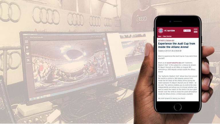 Every registered user can follow a 360° live broadcasts from the fan stand and interact with the „Fan Ambassadors“ gathered around the camera. In addition to that there are „Fan Reporters“ who are streaming from different locations around the stadium. Fans on the platform can chat with each other as well as with the Live-Stadium fans in real time.